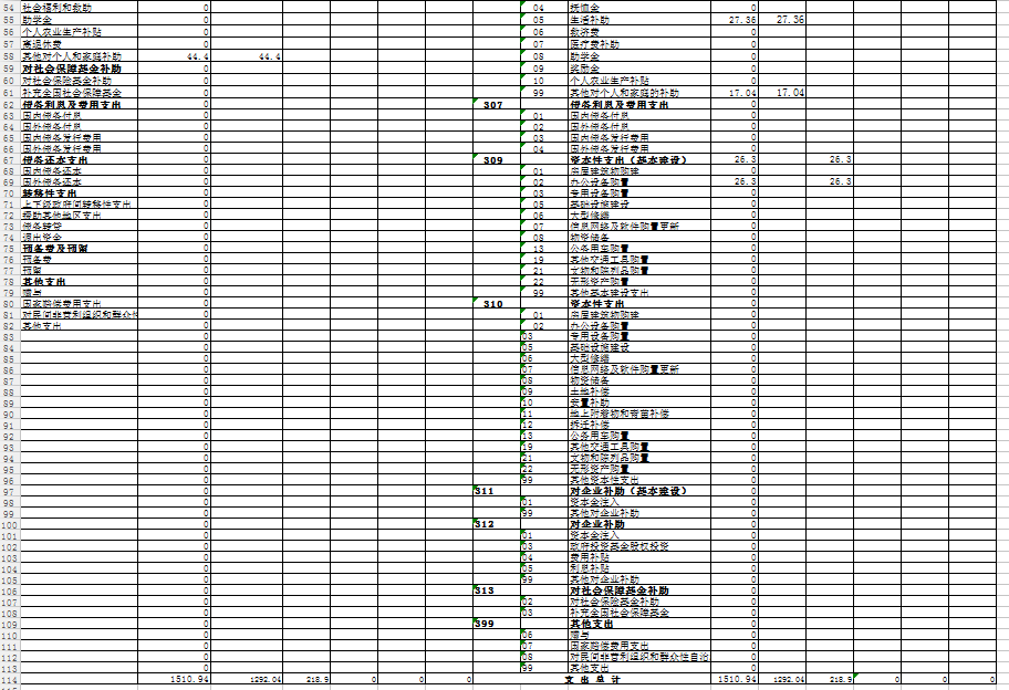 经济科目分组(其中:基本支出1292.04万元,项目支出218.9万元)。