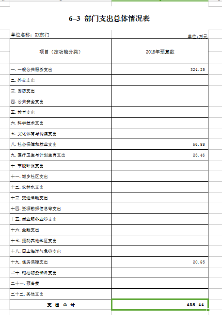 第二部分 XX部门XX年部门预算表