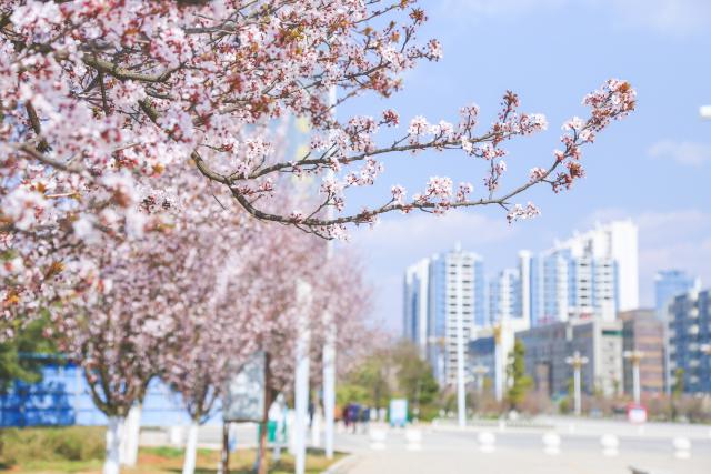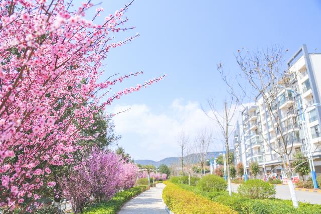 游走在马龙县城,暖阳绵绵,杨柳婀娜,微风拂面。一路盛开的繁花,为行人眼中的世界增添绚烂色彩,白色的花高洁,紫红色的花浓烈而深沉,泼泼洒洒,春风中正开得浪漫。