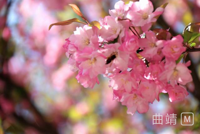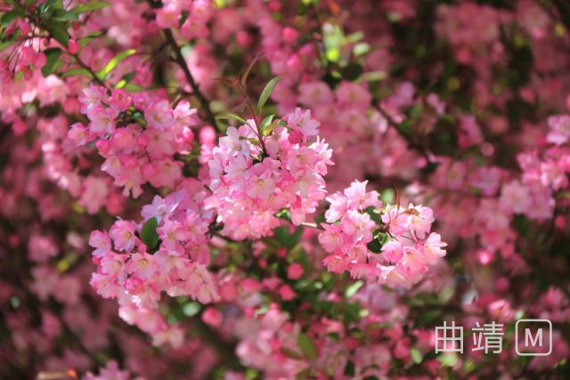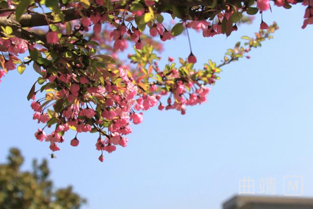 阳春三月,桃花、樱花、李花、杏花竞相开放,海棠花也赶来凑热闹,一排排、一簇簇争奇斗艳把春闹。