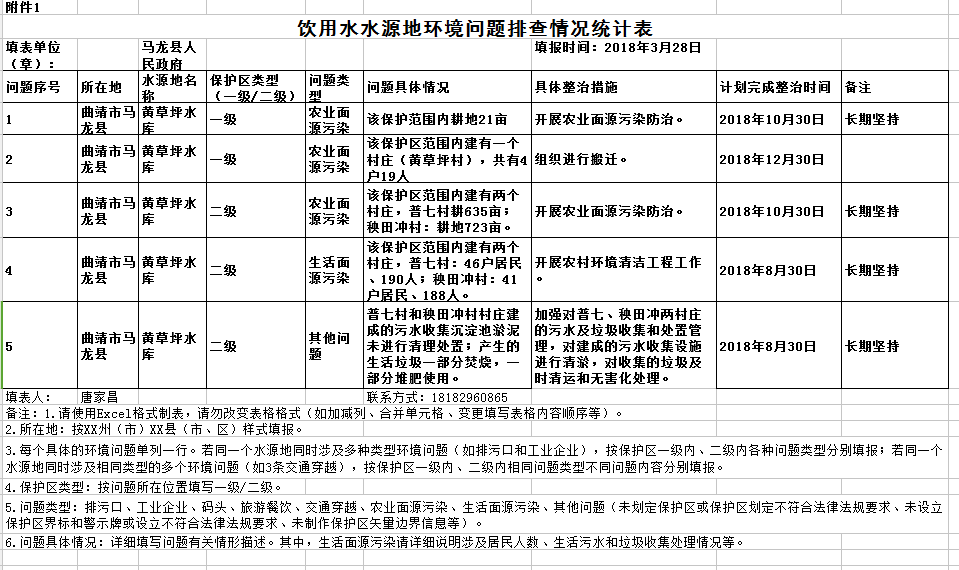 【上一篇】:马龙县集中式饮用水水源地保护专项排查工作情况总结