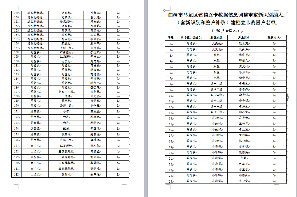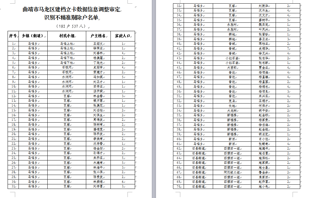 曲靖市马龙区建档立卡数据信息调整和补录工作审定结果公告