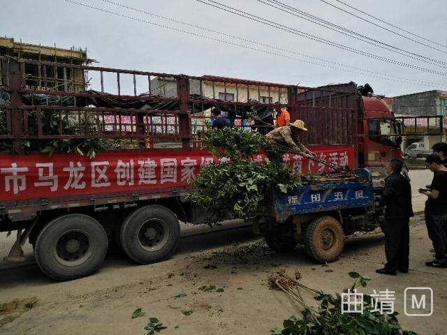 7月2日,马鸣乡林业站院内人声鼎沸,有的开着三轮车,有的开着面包车,不约而同的来到乡林业站,一个个满面笑容的从林业站相关人员处签字并领取树苗。这是区林业局送苗到马鸣。